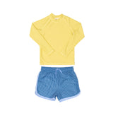 A perfect match! Our Citrus Rash Guards and Ocean Swim Shorts are a handsome combo and provide your kid with the ultimate sun protection. Now your boys can hit the beach in style while being sun smart.