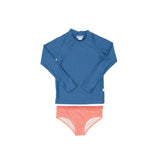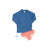 A perfect match! Our Ocean rash guard and Rose striped swim brief are a cute combo and provide your kid with the ultimate sun protection. Now your girls can hit the beach in style while being sun smart.