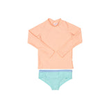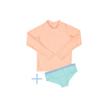 A perfect match! Our Peachie Rash Guard and Seaside Swim Brief are a cute combo and provide your kid with the ultimate Sun Protection. Now your girls can hit the beach in style while being sun smart.